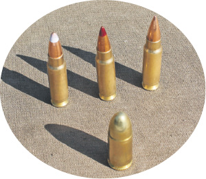 Патронът се изработва в няколко разновидности, които се различават по масата на куршума и началната скорост на изстрелване. Патронът със сребристо оцветяване на челната част на куршума е предназначен за стрелба със заглушители, като неговата начална скорост е 300 м/сек и е сведена под скоростта на звука – 340 м/сек. Това е постигнато чрез увеличаване на масата на куршума за да се запази кинетичната енергия, която е важен показател за поразяващата му способност.