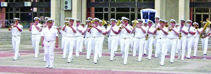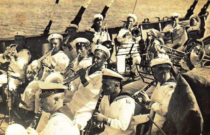 Първият българин, който през 1920-та поема ръководството на флотския оркестър, е Александър Наумов. Общо 18 души са държали диригентската палка до днес. Първата задгранична изява на оркестъра е в град Севастопол, Русия,